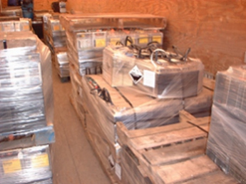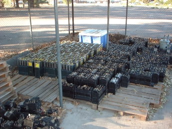 Batteries that we have cleaned up and sorted to meet the needs of recycling facilities and DOT.